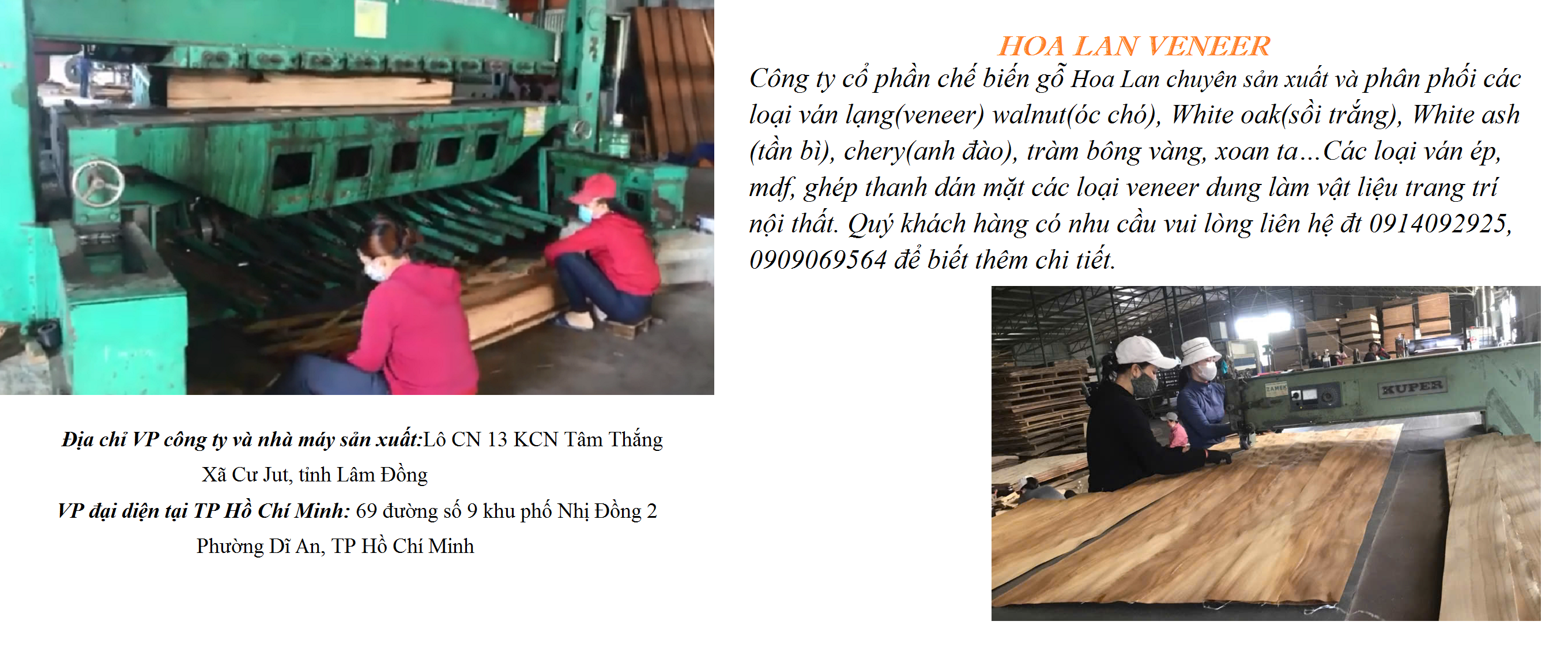 Cảm ơn các bạn đã tham quan Website Hoalanveneer.com, trang web chính thức của CÔNG TY CỔ PHẦN CHẾ BIẾN GỖ HOA LAN. Công ty chúng tôi đặt tại Lô CN 13 KCN Tâm...